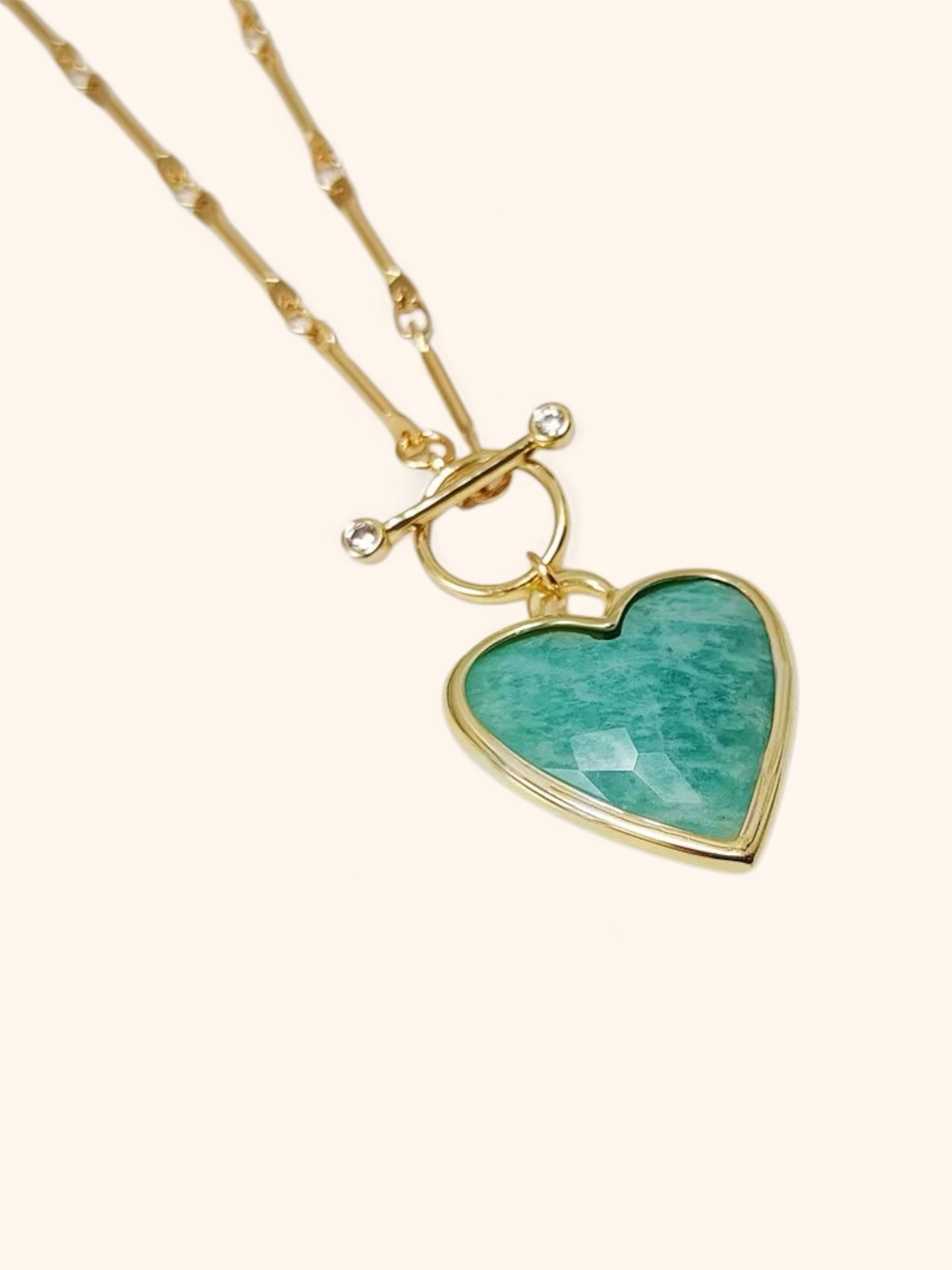 Elevate your ensemble with the Amazonite Pierre Necklace, a testament to timeless elegance. This handmade gold chain design features a heart-shaped Amazonite pendant, celebrated for its ability to soothe the soul and inspire clarity. Known as the "Stone of Courage," Amazonite fosters harmony, balances energy, and encourages fearless self-expression.