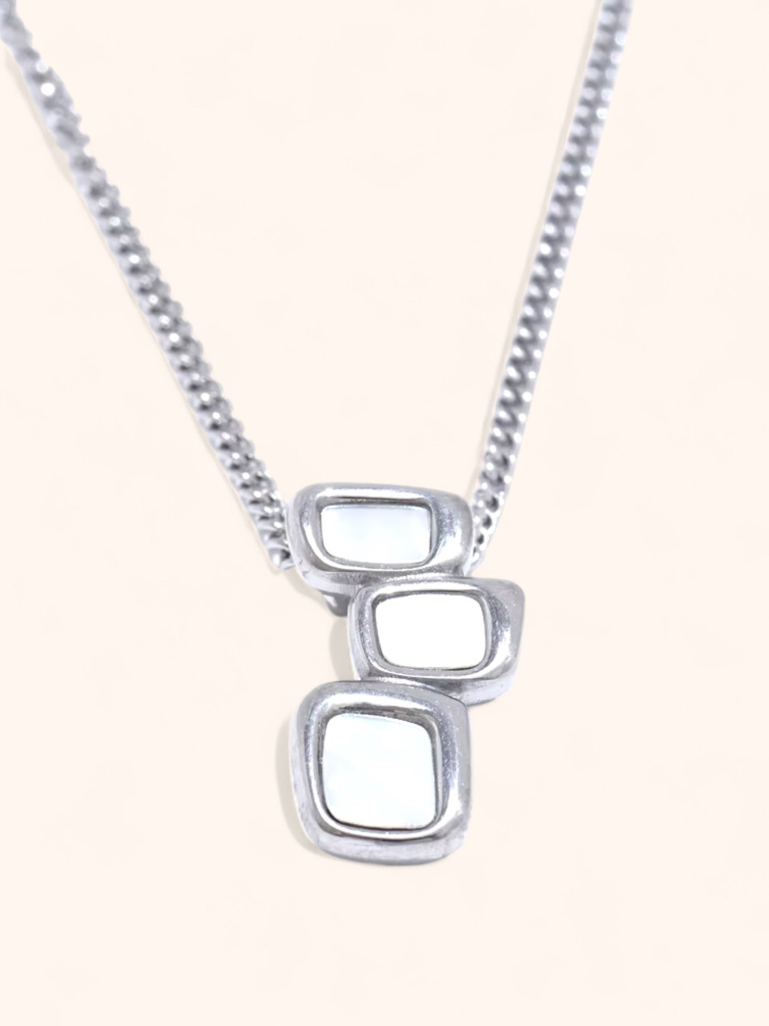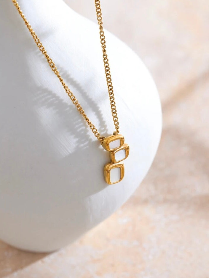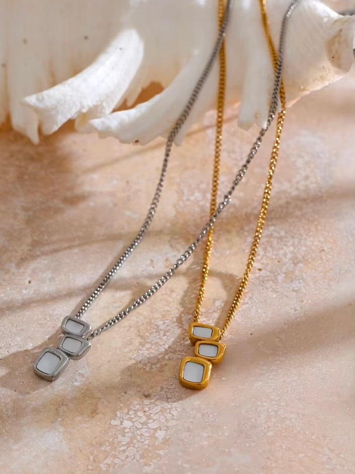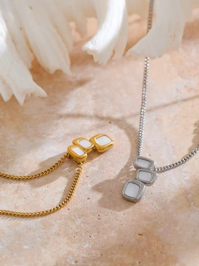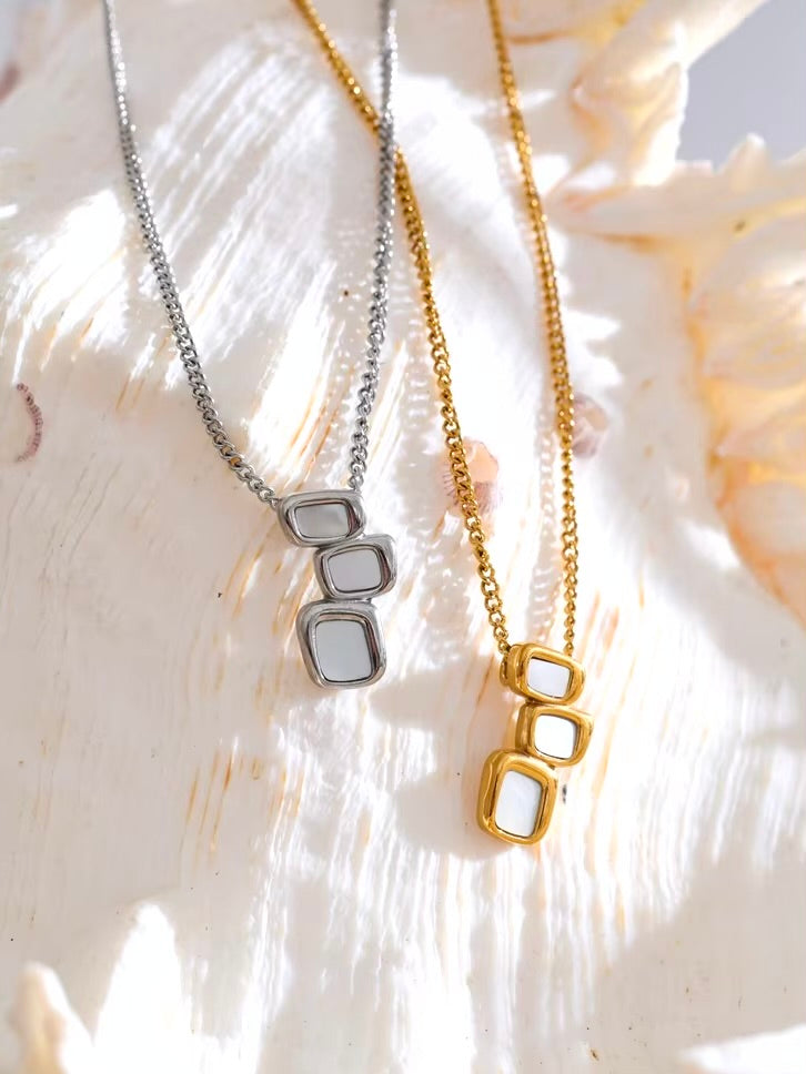 The Aurélie Necklace captivates with its geometric pendant, crafted in gold or silver, featuring a luminous natural shell. A seamless blend of modern design and timeless elegance, this piece adds a touch of éclat to any look. Perfect for day-to-night wear, the Aurélie is an essential for those who appreciate understated luxury.