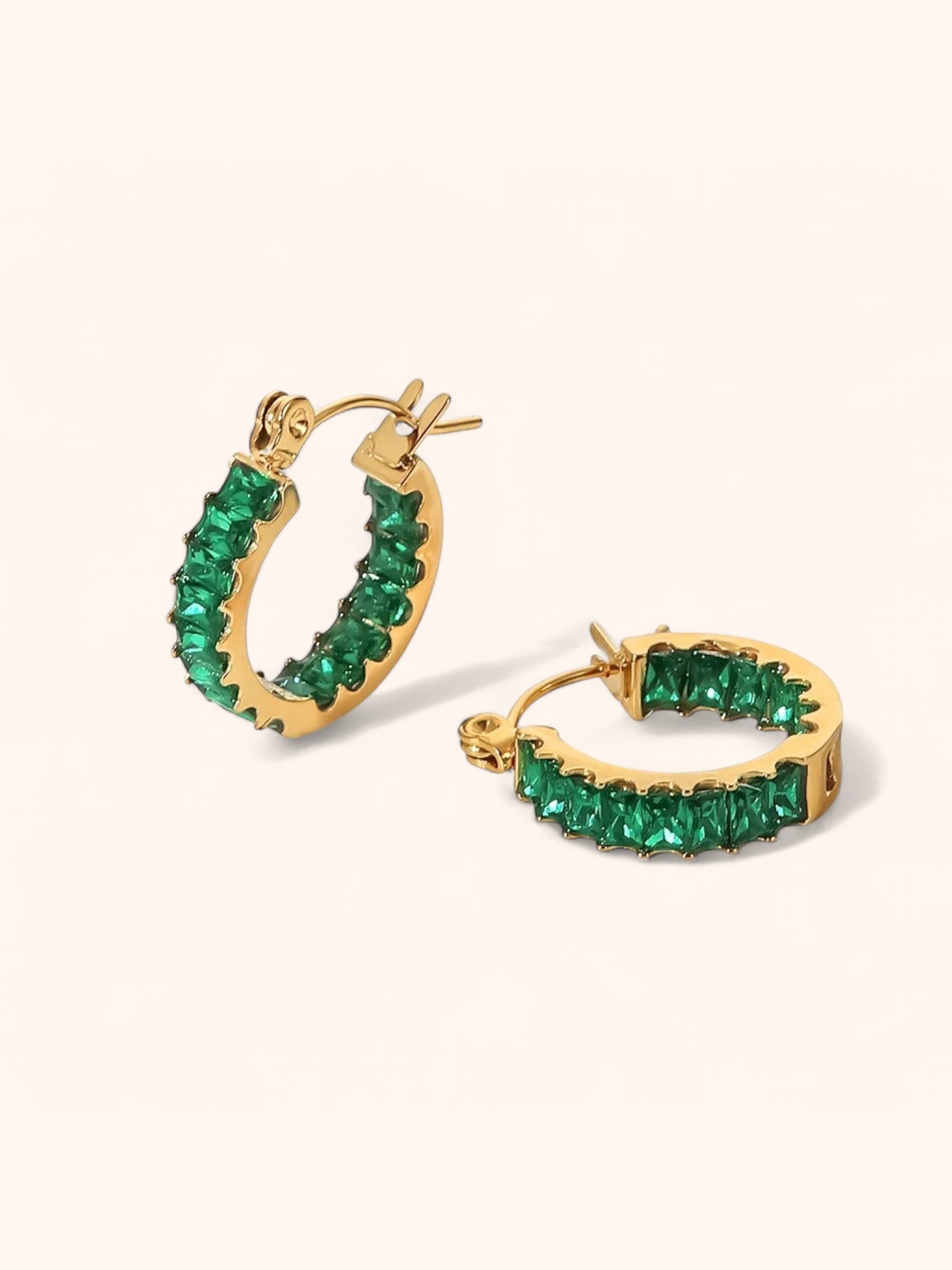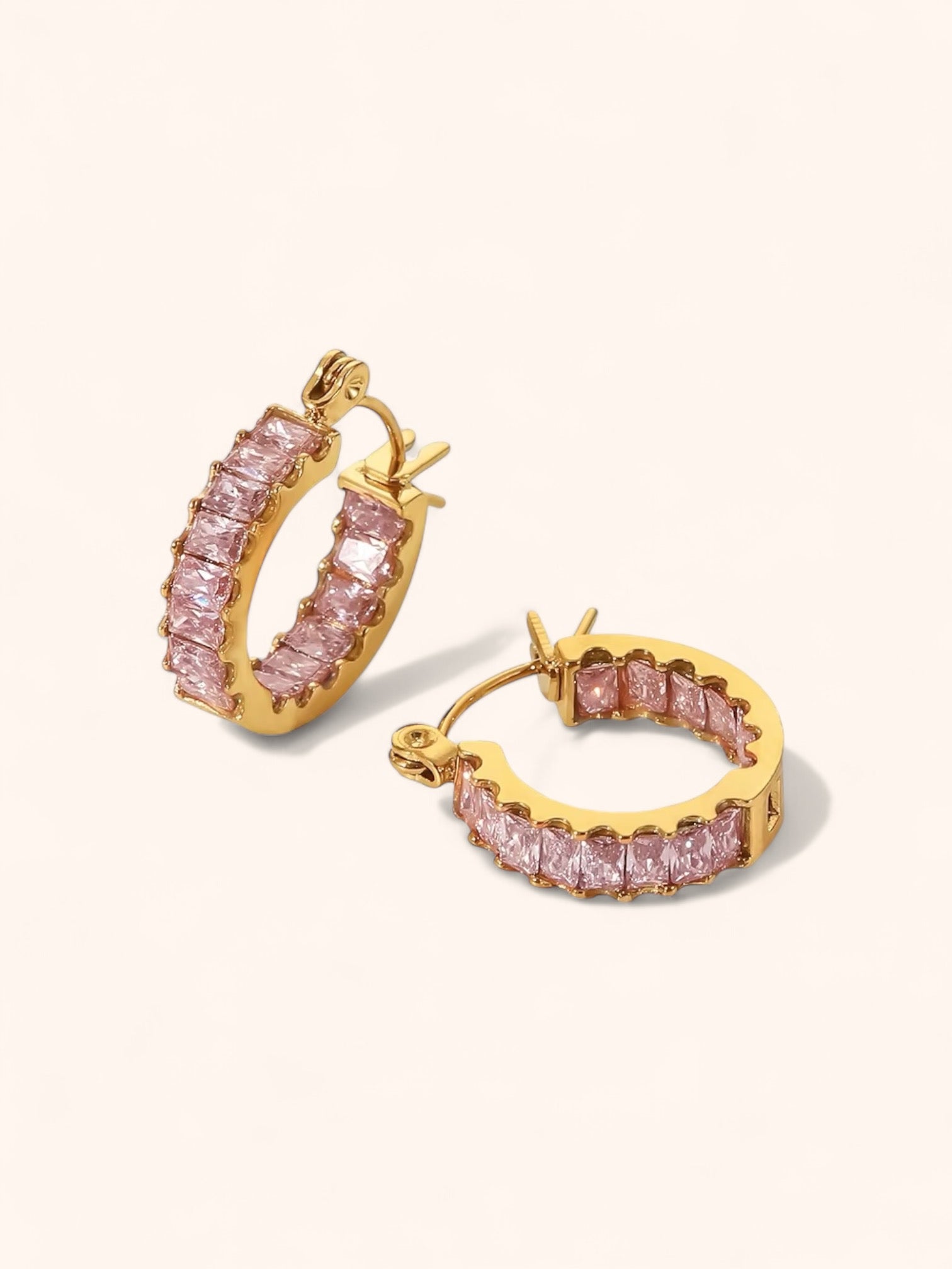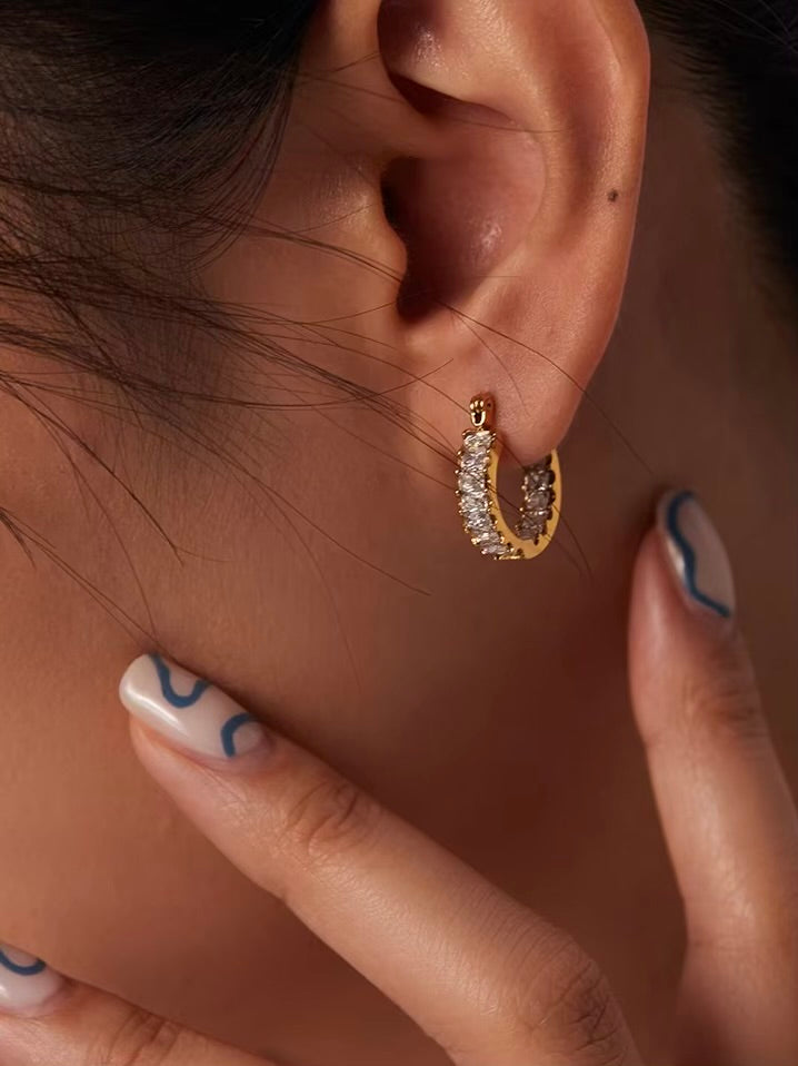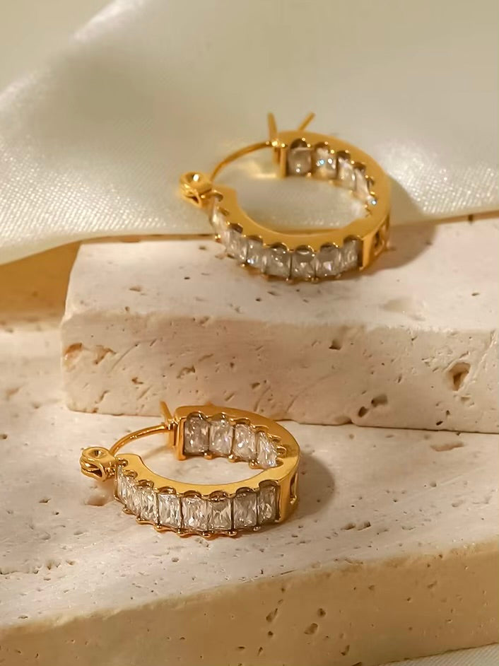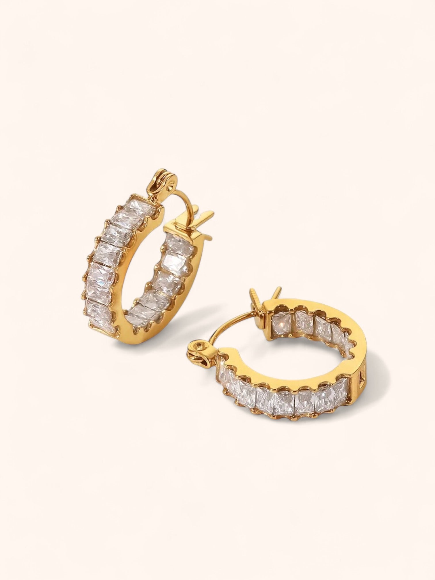 Elevate your style with the enchanting Baiser de Lune Earrings, featuring exquisite front-facing crystals that create a radiant halo effect. These elegant gold hoops embody a refined allure, perfect for capturing the essence of evening elegance.