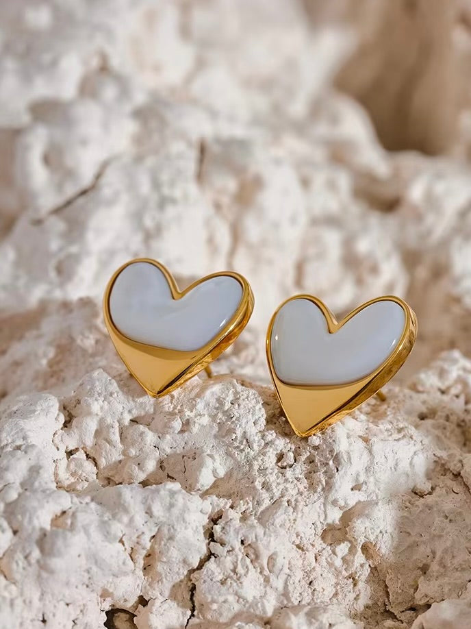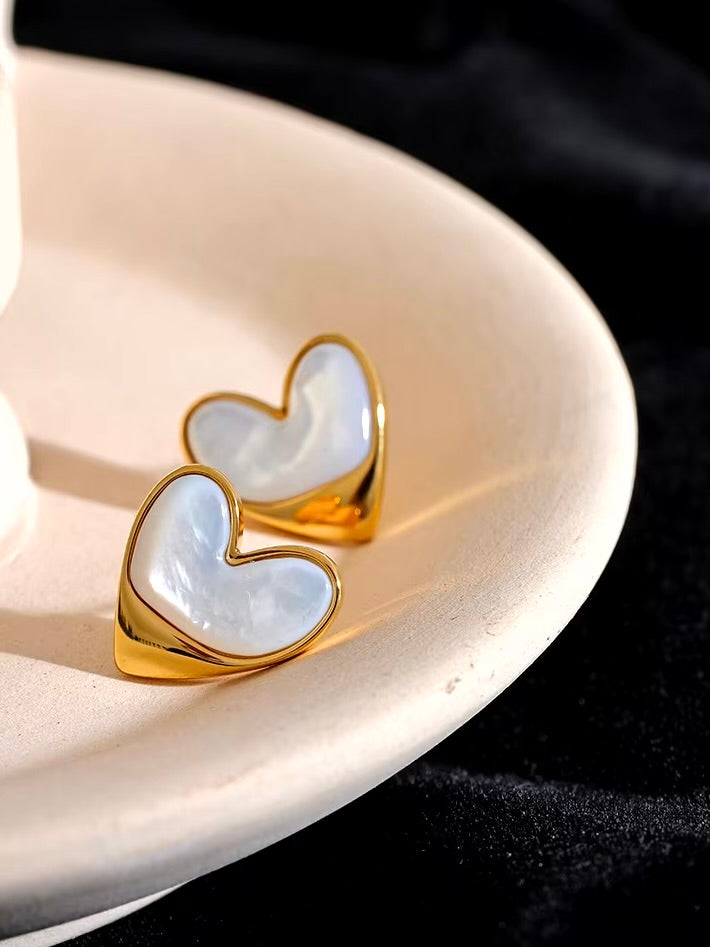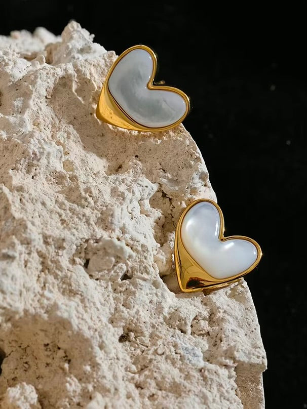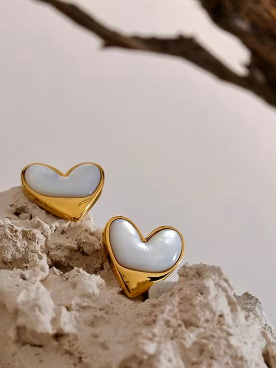 The Chant des Vagues Earrings capture the essence of the ocean’s timeless rhythm, featuring elegant heart-shaped studs adorned with natural shell accents. The luminous gold finish enhances the organic beauty of the design, while the delicate details evoke a sense of élégance. Perfect for those who seek subtle luxury with a coastal touch.