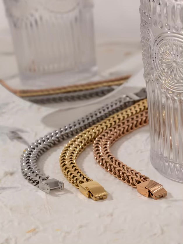 The Clarté Noire Bracelet features a bold Cuban link chain, expertly crafted in sleek silver or radiant gold. This striking unisex piece adds a touch of modern elegance, making it a must-have for any jewelry collection.