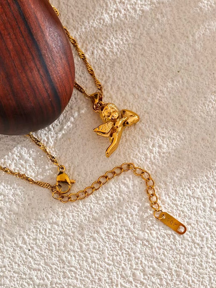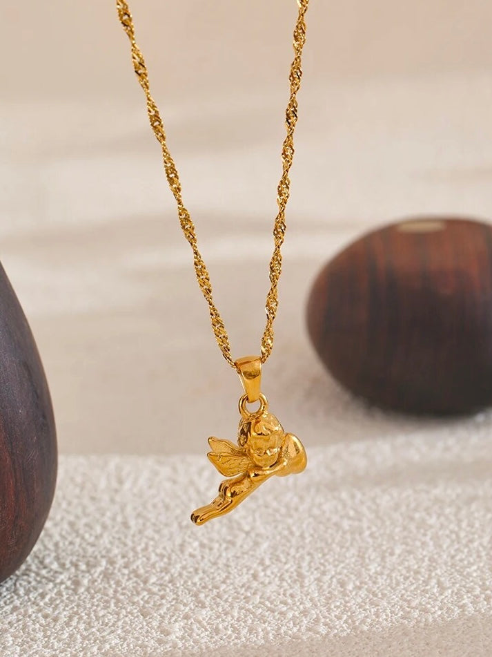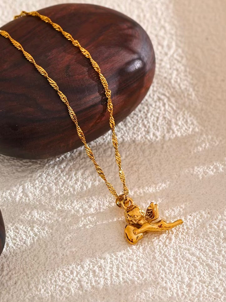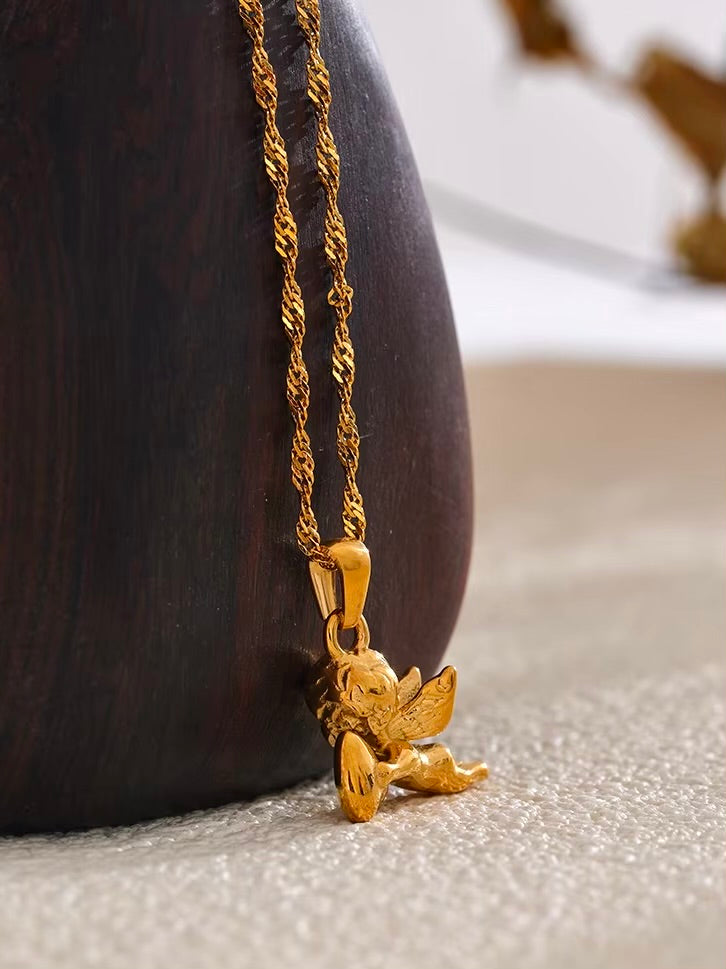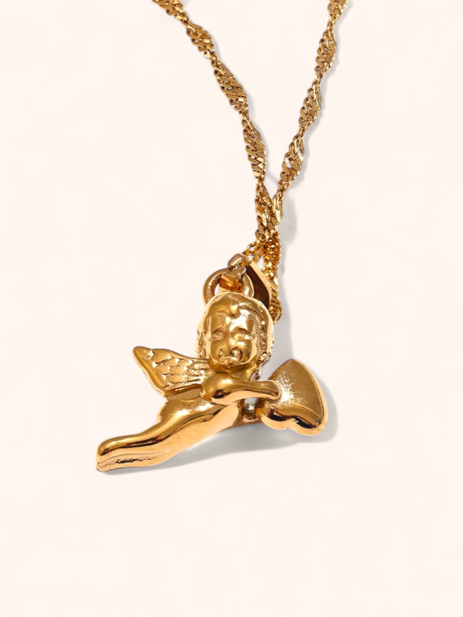 The Cupidon Necklace captures timeless romance with its delicately crafted Cupid pendant suspended from a sleek gold chain. Perfect for layering or wearing alone, this piece radiates amour with its graceful charm and refined details. Let the pendant’s glimmering cubic zirconia gemstones bring a subtle touch of sparkle to your décolletage.