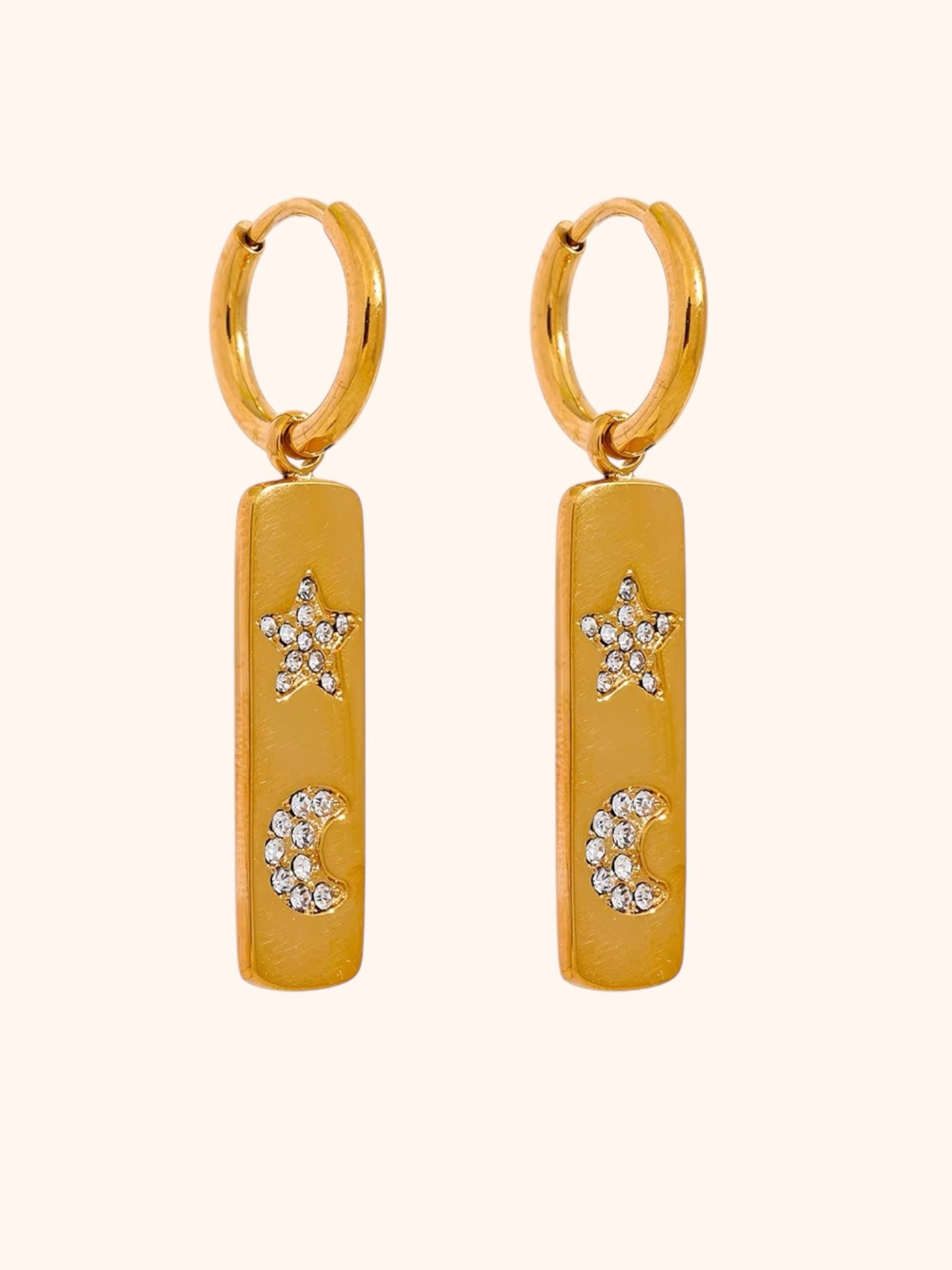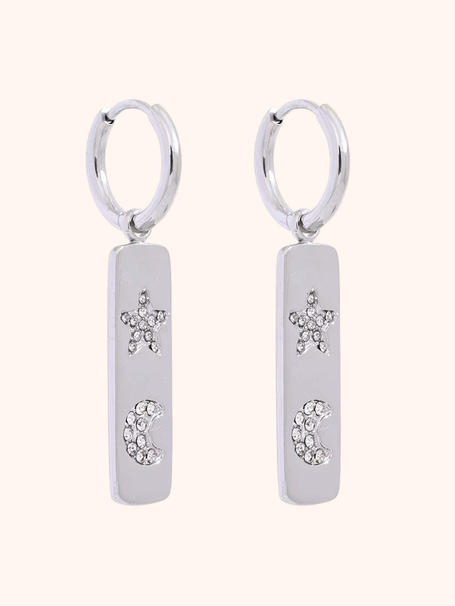 Embrace the enchanting allure of the Douceur de Minuit Earrings, where elegant moon and star motifs gracefully intertwine. Set in luminous silver or gold, these exquisite earrings are adorned with shimmering cubic zirconia gemstones, capturing the essence of a tranquil night sky. A sophisticated accessory that adds a touch of celestial magic to any ensemble.