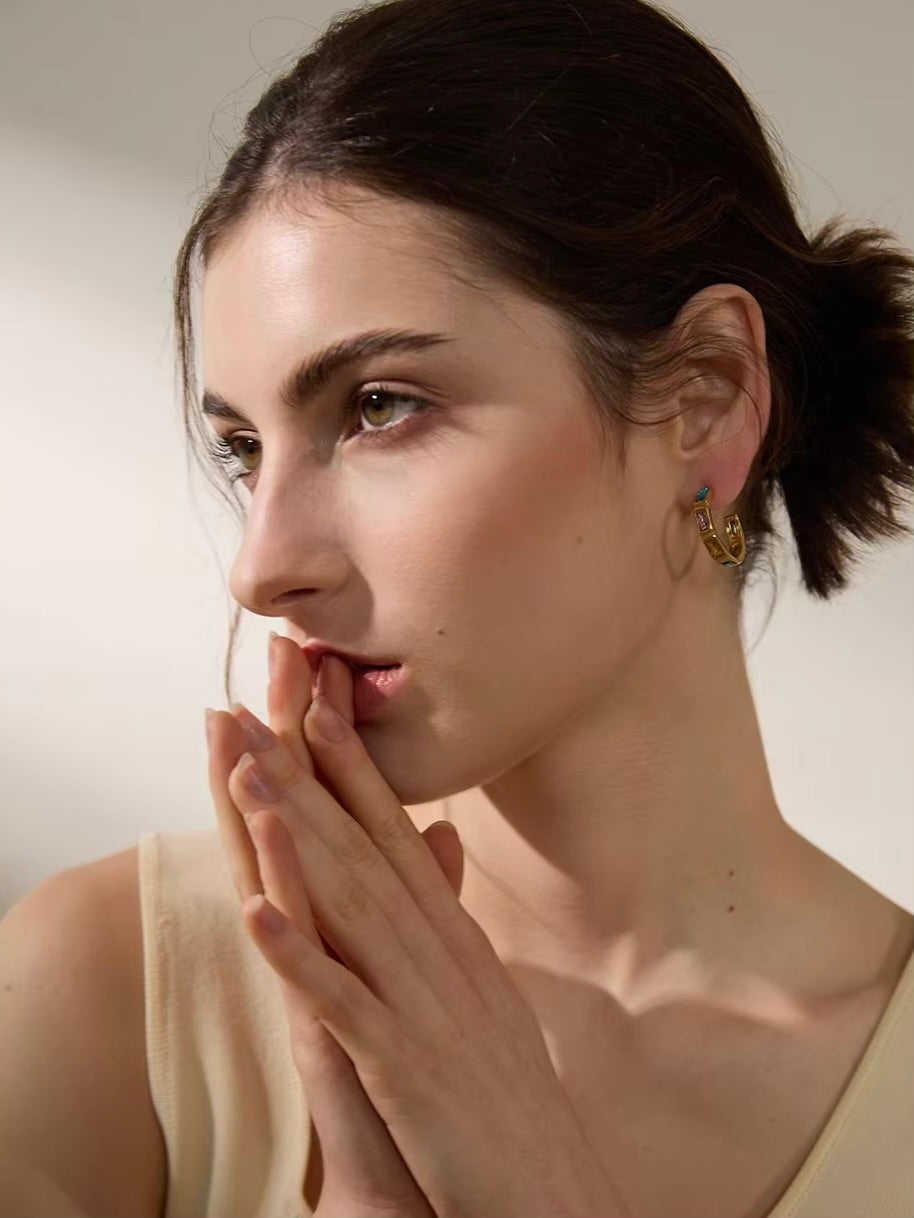 Indulge in the allure of the Écho du Désir Earrings, featuring elegantly designed open hoops that radiate charm and elegance. Crafted in gold and adorned with a spectrum of vibrant crystal options, these earrings are the perfect statement piece to enhance your collection.