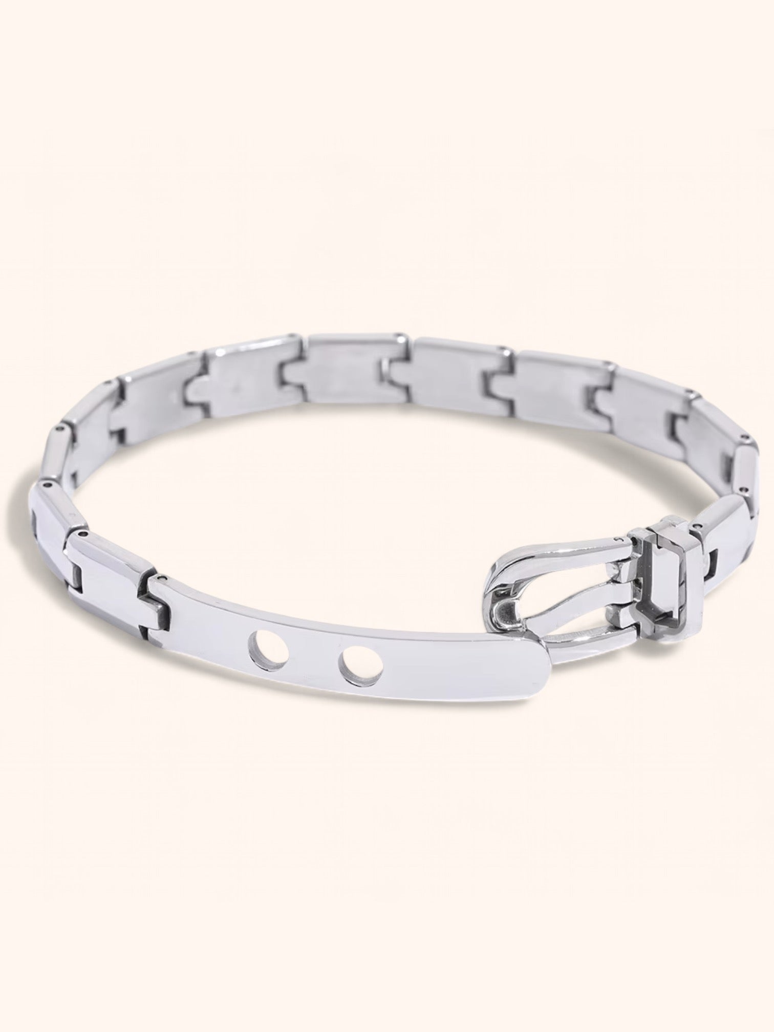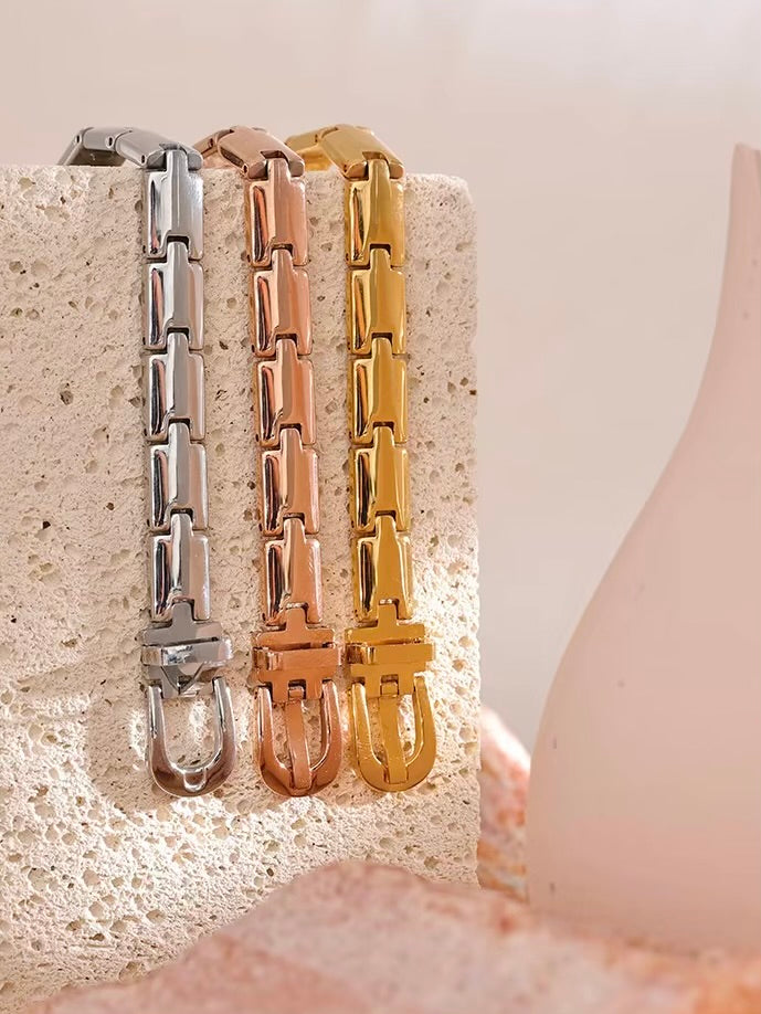 The Éclat d'Amour Bracelet features a bold Cuban link chain and a sleek, polished buckle clasp. Available in luxe silver or radiant gold, it exudes a touch of effortless sophistication. Perfect for stacking or wearing solo for a chic statement.
