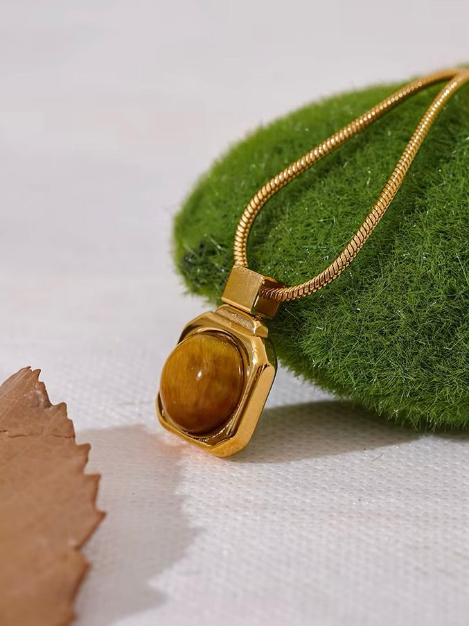 The Lune Necklace exudes timeless allure with its sleek gold rope chain and a striking pendant featuring a large Tiger's Eye stone. Known for its protective and grounding energy, the pierre naturelle adds a sense of strength and clarity, making this piece both beautiful and meaningful.